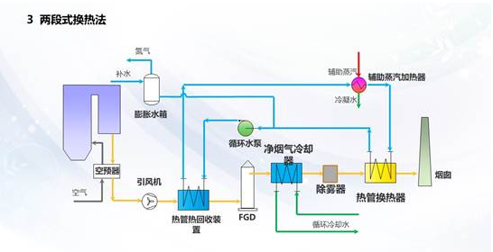 通过降低烟气的相对湿度或提高烟气的排放温度高烟气的排放温度来解决。其原理是避免冷却过程中水蒸气的冷凝,避免湿烟羽的产生。目前,主要有以下方法: